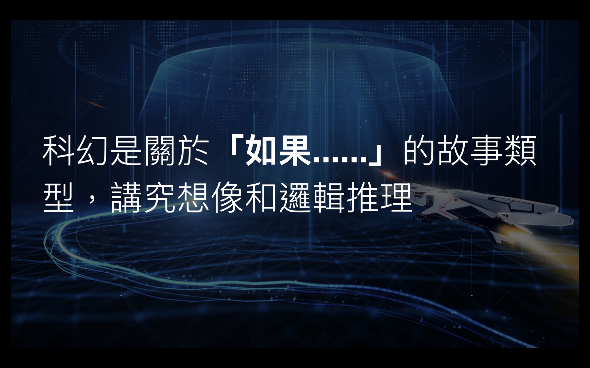 科幻電影是全球最受歡迎的電影類型,優秀的科幻電影並不是靠電腦特技去吸引觀眾,而是深刻的內涵。 本講座以多部科幻電影預告串連,扼要介紹⼈⼯智能、基因⼯程、氣候變化等非常生活化的主題。部份科技已經從科幻題材變成現實(這也是科幻的特質)。 由於科技發展突⾶猛進,講座內容也不斷更新,與時並進。 本講座設有問答環節(建議老師安排送贈小禮物予同學),已在超過二十間中學舉辦,深受學生歡迎。